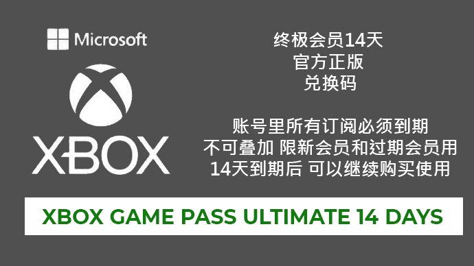 1. 会员期是14天,加入Xbox Game Pass Ultimate后,你其余的Xbox Live Gold或Xbox Game Pass会员资格也会升级到Xbox Game Pass Ultimate,有效期和前者一致,总计最长36个月。(已享受过升级的用户过期再用)添加续费可送30天Xbox Game Pass Ultimate