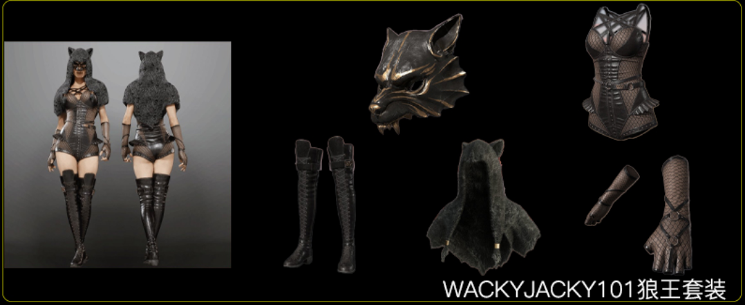 PUBG WACKYJACKY101狼王套装内含物品如下图: