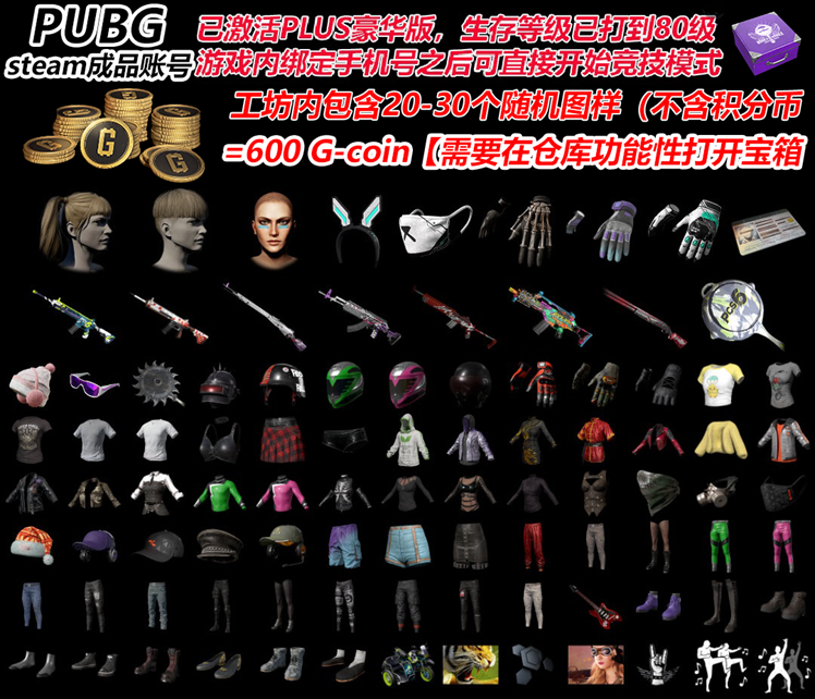 PUBG游戏Steam皮肤账号(不!是!CDK!版!本!)。