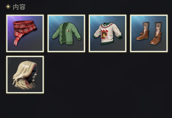 PUBG 节日派对套装内含物品如下图: