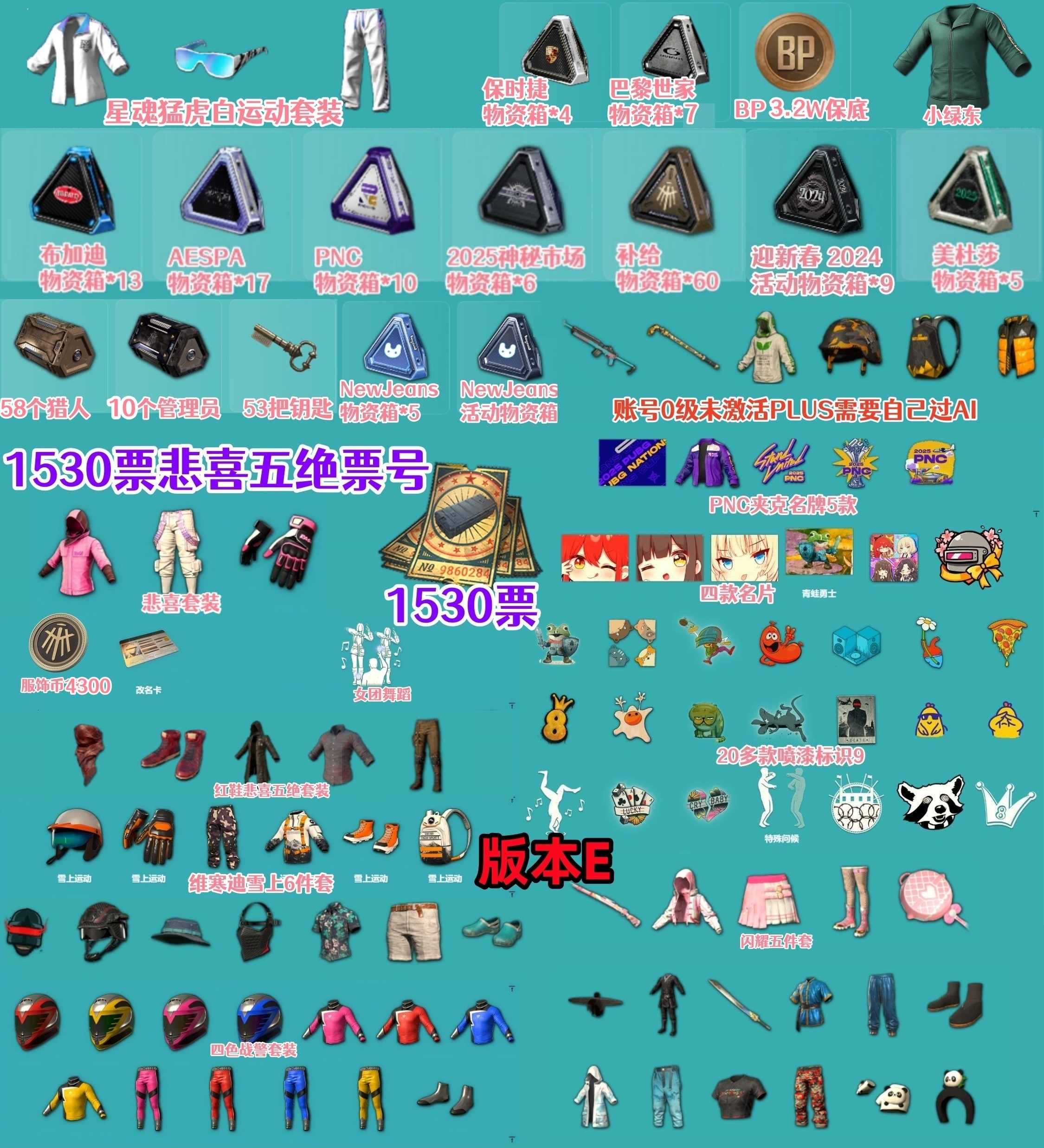 PUBG Steam账号(保底1530票+悲喜+星魂白运动套装):