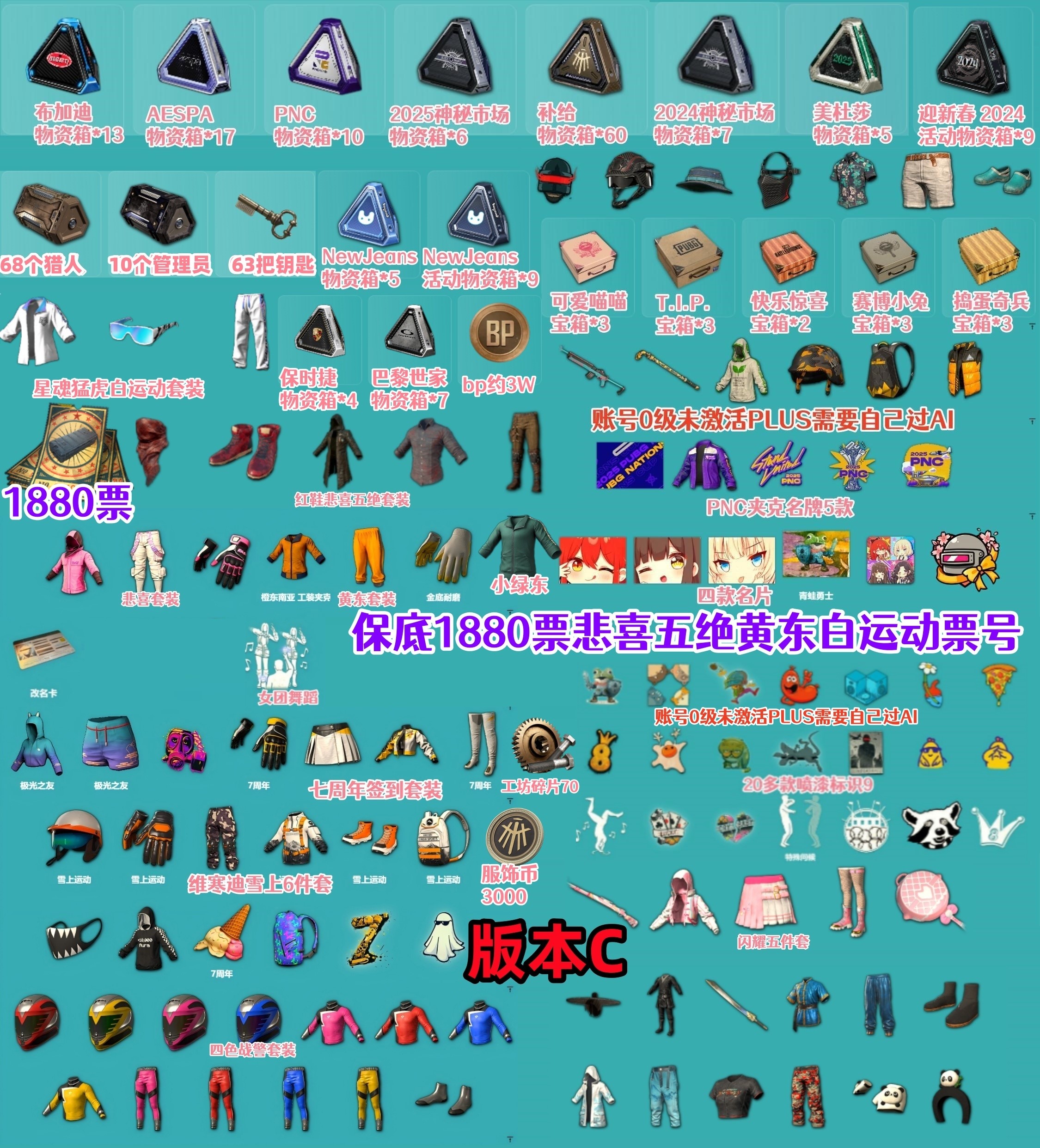 商品版本:该账号一共分为8个版本,包含PUBG Steam账号(保底1100票+权志龙AUG)、PUBG Steam账号(保底1600票+黄东套装+星魂白运动)、PUBG Steam账号(保底1530票+悲喜+星魂白运动套装)、PUBG Steam账号(保底1880票+悲喜黄东+星魂白运动套装)、PUBG Steam账号(保底1090票+玩偶SLR)、PUBG Steam账号(保底1480票+美杜莎M762)