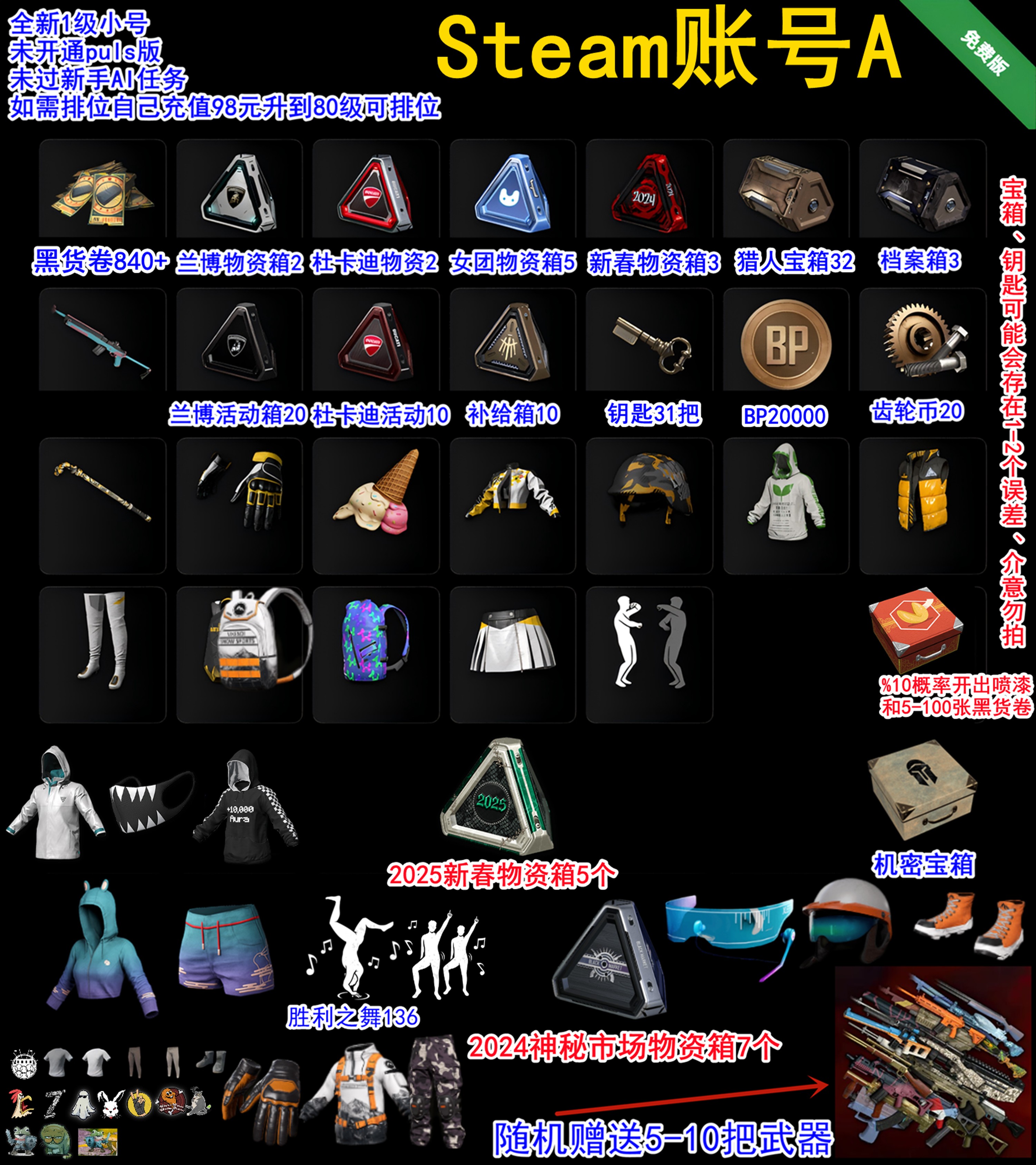 PUBG游戏Steam皮肤账号(不!是!CDK!版!本!)。
