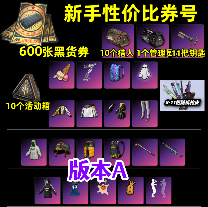 饰品/道具 PUBG Steam非豪华版账号:新手推荐黑货票券成品号(部分版本含有随机枪皮/升级武器具体详见库存图)