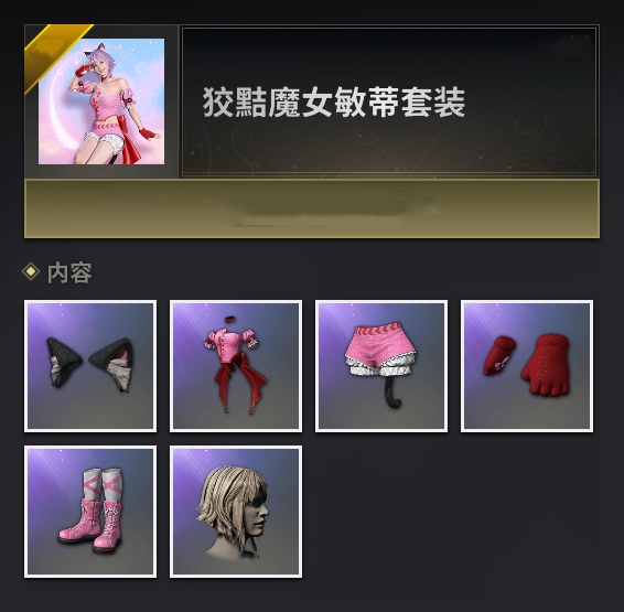 PUBG 狡黠魔女敏蒂套装内含物品如下图: