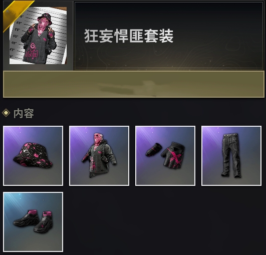 PUBG 狂妄悍匪套装内含物品如下图: